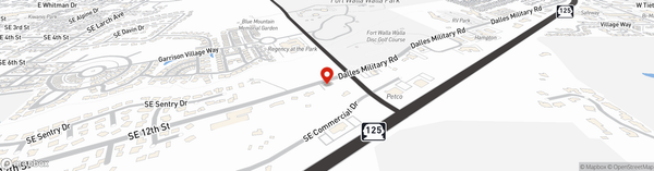 At the intersection of Dalles Military Rd. and Myra Rd., up the hill from Big 5.